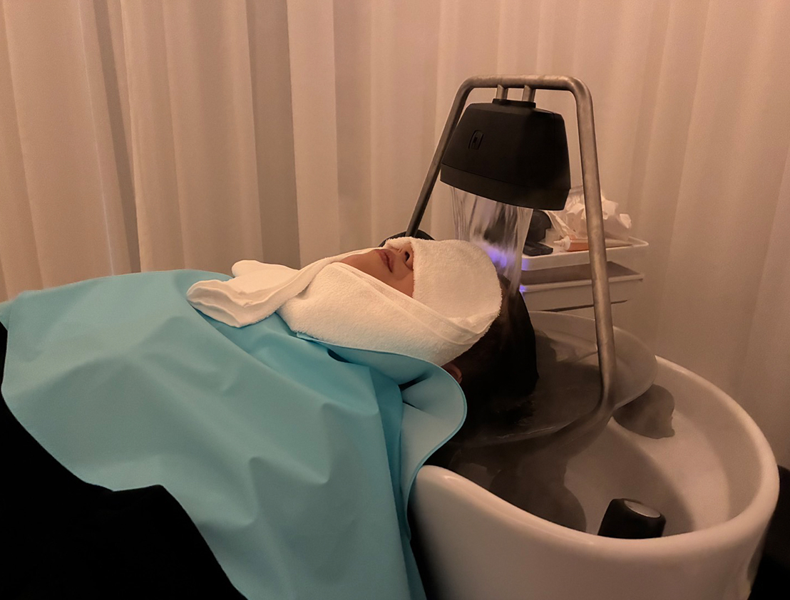 当サロンは頭浸浴「YUME HEADBATH」を導入しています。お湯に頭全体を包み込まれるような体感は、まるで瞑想のように心を解きほぐし、日常の疲れをやさしくリセット。心地よい温かさが血流を促し、頭皮環境を整えながら美髪へと導きます。